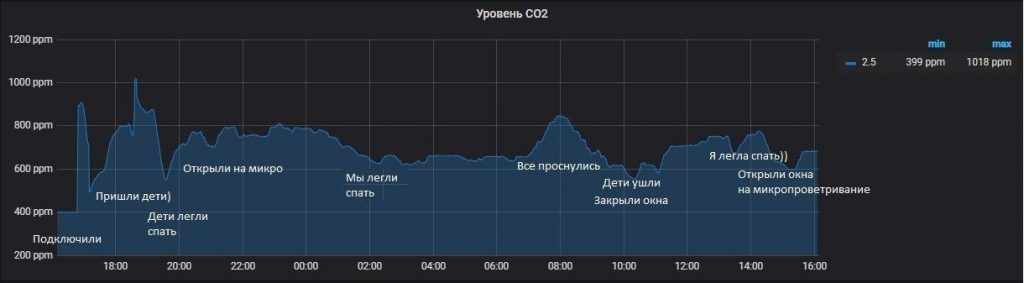 Аднак сёння ноччу я прачнулася і пабачыла жэстачайшы ўзровень СО2 у спальні. Ён быў настолькі чырвоны, што я проста адчыніла вакно, легла ў ложак і да раніцы не пераставала дзівіцца, што для нас было натуральна спаць у такім цяжкім паветры.